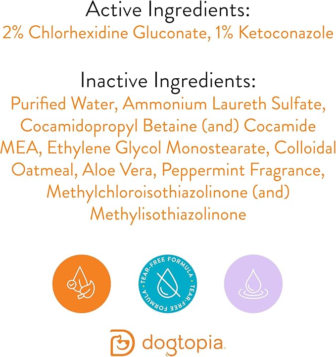 - Made with highly effective ketoconazole and chlorhexidine gluconate, Dogtopia’s Keto-Dog Medicated Shampoo soothes and relieves your pet’s irritated skin.