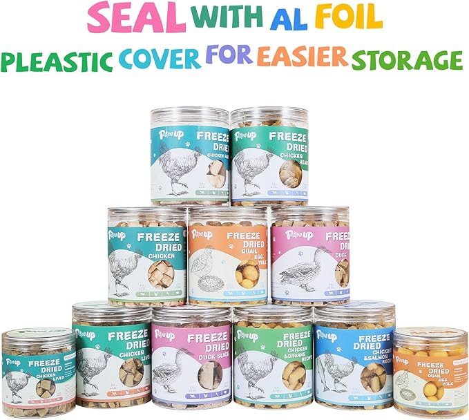 - Variety of Flavor: Whether given whole, crumbled for added flavor, or dehydrated to enhance the meaty aroma, PAWUP freeze dried treats offer a variety of feeding options. You can also choose different freeze dried treats from PAWUP to supply multiple flavor and comprehensive nutrition to your beloved furry pets