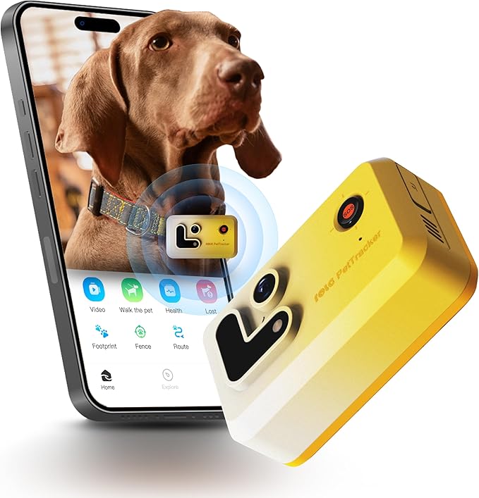 ROLA PetTracker GPS Tracking for Dogs: Live GPS Location, Cellular & WiFi, Replacable SIM Card, Geofencing, Built-in Light and Sound, Camera for Image Positioning (Yellow)