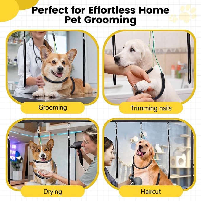 - Comprehensive Grooming Solution: Equipped with 3 no-sit haunch holders, our versatile grooming arm ensures your pet's security and comfort during various grooming tasks. Perfect for trimming nails, cutting hair, or giving baths, this grooming arm suits breeds like Golden Retrievers, Labradors, German Shepherds, and more. (Note: Grooming table not included.)