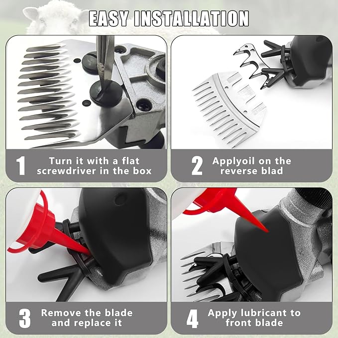 - Suitable for All Types of Sheep:Sheep shears ideal for trimming sheep, goats, llamas, alpacas, and other farm-raised animals. No charging is needed; just connect to the power supply. Operating noise is about 85dB, which won't scare the sheep. The complete kit includes: 1x plastic carrying case, 1x electric sheep shear, 2x blades,1x carbon brush, 1x lubricant box, 1x cleaning brush, 1x screwdriver, and 1x instruction manual.