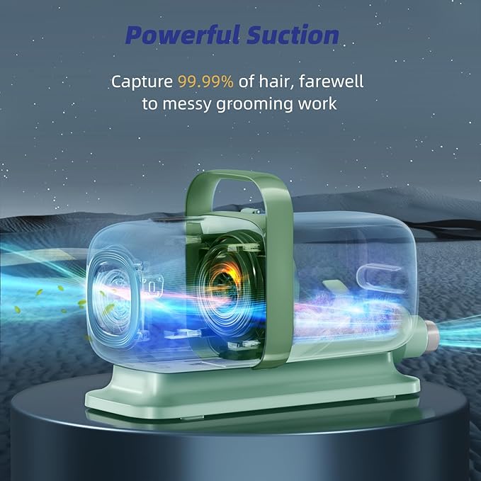 - 🐶【Powerful Vacuum Suction】The Buenkee dog grooming kit comes with a powerful vacuum up to 15000pa, which can trap 99.99% of pet hair and dander into the dust cup while grooming. Pet hair won't spread all over the house. And there's no need to clean the workspace afterward.