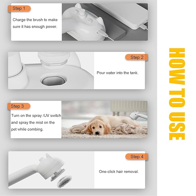 - Anti-static Feature: Our steam brush with the tank, add some water inside it, then it will convert water into spray,but does not heat it. When combing, steamer pets brush can increase pet's hair humidity, effectively reduce static electricity caused by excessive dryness, and do not produce a large amount of flying hair