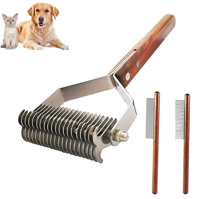 Undercoat Rake for Dogs and Cats, Pet brush for Dematting Comb, Pet Grooming Combs For Long-Haired & Short-Hair, Removes Dander, Dirt, and Detangles,With Wooden Handle 3 pack.