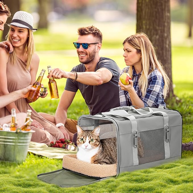- 【COMFORTABLE】Ventilation on all sides; double opening design ensures that your pet breathes fresh air and won't get heatstroke. The top opening design of the cat carrier allows you to keep an eye on and comfort your pet at all times.