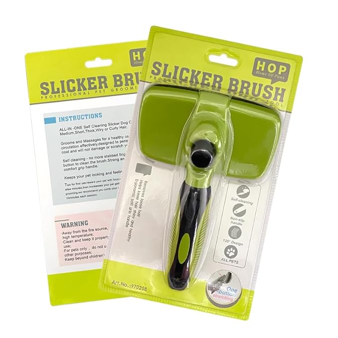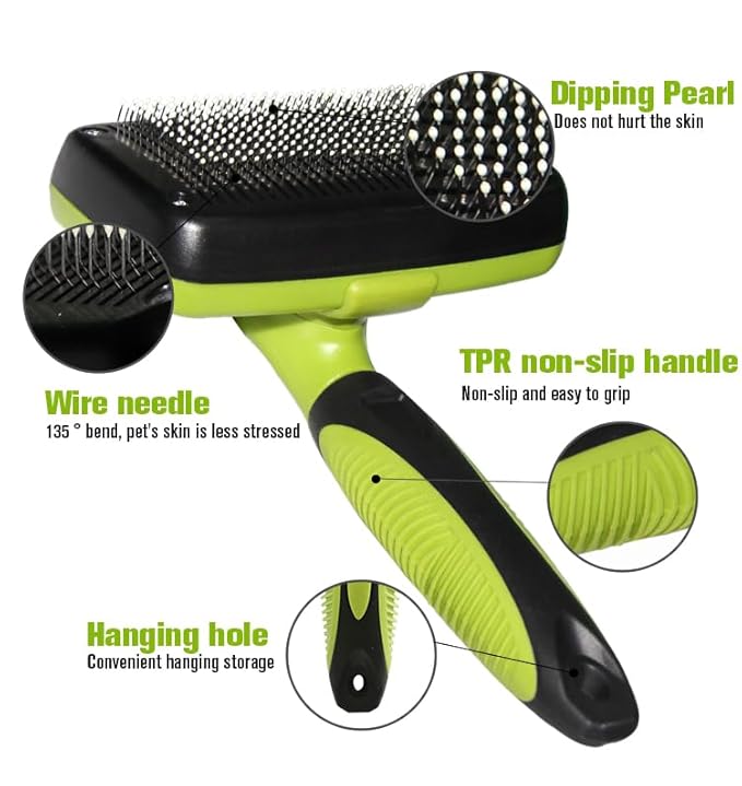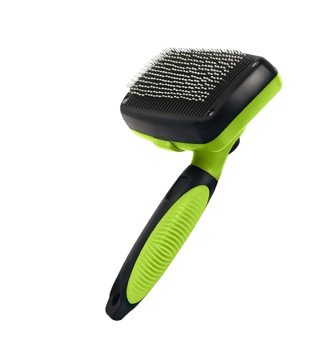Pet Hair Slicker Brush, Pet Grooming, Smooths Pet Coat, Cat and Dog Slicker Hair Brush, Removes Loose Fur, Ideal for Short to Long Hair, Comfortable Grooming., Regular, Green
