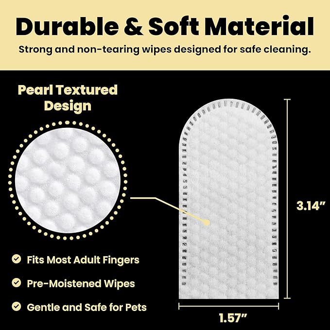 - Easy to Use: The finger design of these wipes provides excellent control, allowing you to reach all areas of your pet's mouth with ease. This makes the cleaning process quicker and more comfortable for both you and your pet, especially compared to traditional toothbrushes.