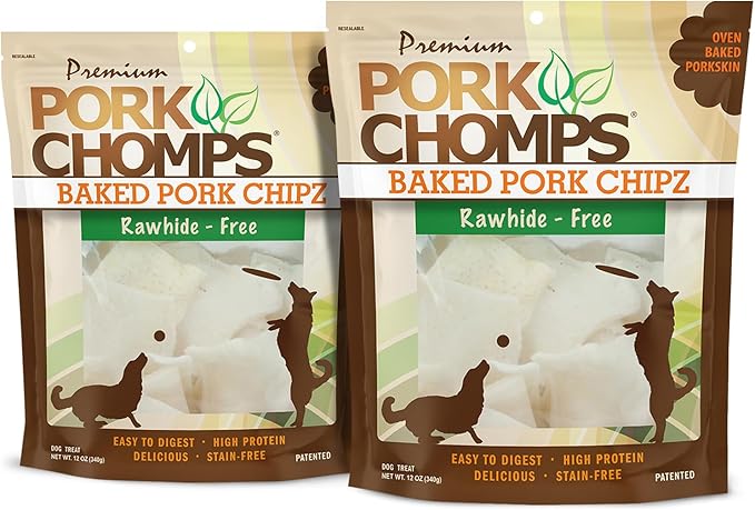 Pork Chomps Baked Pork Skin Dog Chews, 3-inch Chips, 12oz Bag (Pack of 2)