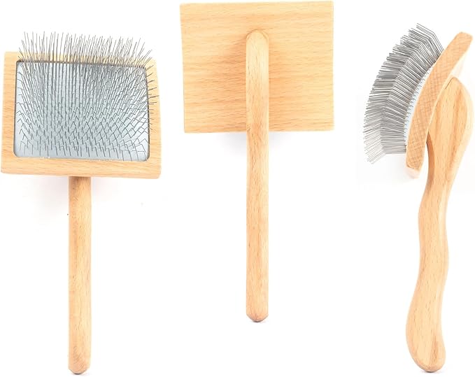 Long Pin Slicker Brush for Dogs (Goldendoodles, Labradoodles, Poodles) and Long Hair cat, Best Grooming Brush for Small Animals ,for Grooming Pet Hair, Beech Wood