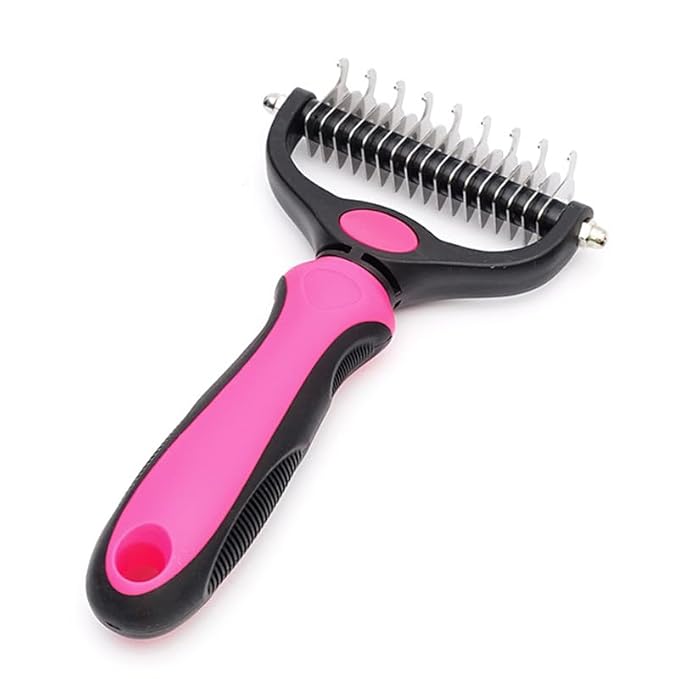 - DUAL-SIDED TEETH DESIGN: This dual-sided LORO ESSENTIALS grooming brush is designed for long-haired dogs and cats, offering a comfortable and effective grooming experience. Use the 9-teeth side to easily tackle stubborn mats and tangles, then switch to the 17-teeth side for smooth deseeding and thinning. The sharp, yet safe inner teeth glide through tough knots without pulling, ensuring your pet stays relaxed and pain-free.