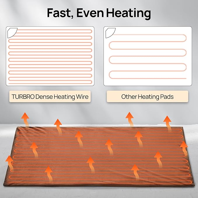 - Generously Sized for Large Pets: The 59'' x 39'' dimensions of TURBRO's heating pad is perfect for larger breeds like Golden Retrievers, Great Danes, and Saint Bernards. This spacious design ensures ample room for your pets to stretch out and bask in soothing warmth from head to paws.