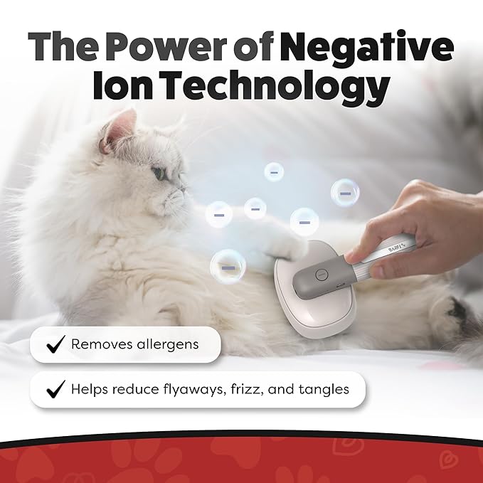 - Negative Ion Technology - Our brush generates negative ions to eliminate allergens, giving your pet a shiny coat. It also helps knots and matted fur, keeping your pet well-groomed with minimal effort.