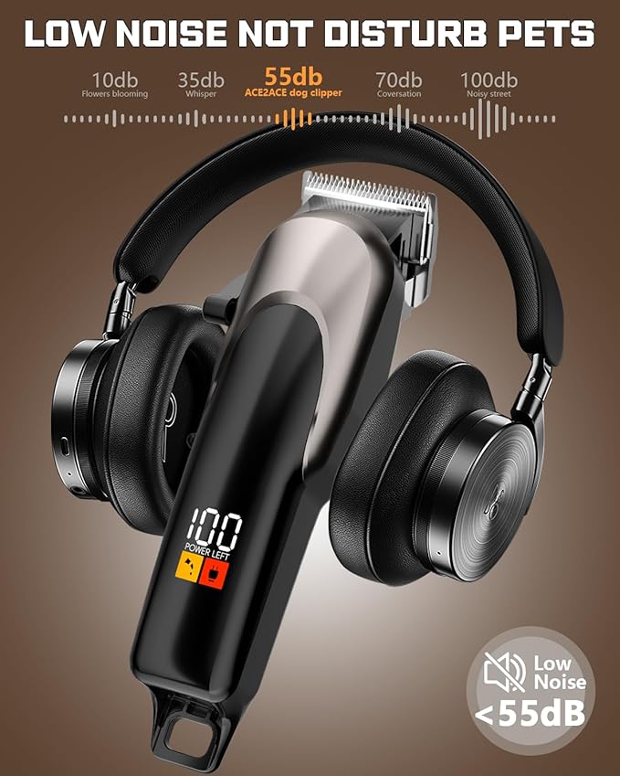 ACE2ACE Dog Clippers Grooming Professional for Thick Hair, Dog Shaver Grooming Kit, Cordless Pet Cat Clippers for Thick Curly Fur, Low Noise Rechargeable Cat Trimmer-6Krpm
