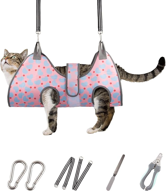 Pet Grooming Hammock for Cats & XS Small Dogs with Nail Clippers/Nail Trimmers, Dog Grooming Harness for Nail Trimming, Pet Grooming Sling Helper for Cutting Nails with Nail Clippers, Nail File