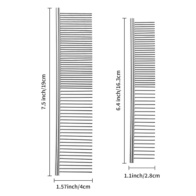 2PCS Dog and Cat Brush, Stainless Steel Pets Grooming Comb Kit, Detangler Deshedding Brush, Metal Knots Hair Remover 6.4" 7.5"