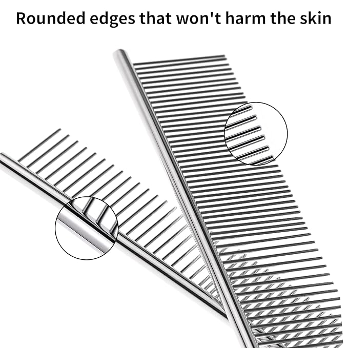 - Premium Material: The metal comb is made of high-quality stainless steel, meticulously polished with a rounded handle for a smooth and comfortable grip. The treated steel comb can prevents static during use, making grooming a more pleasant experience for your beloved pets.