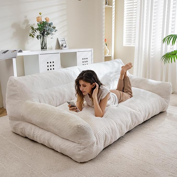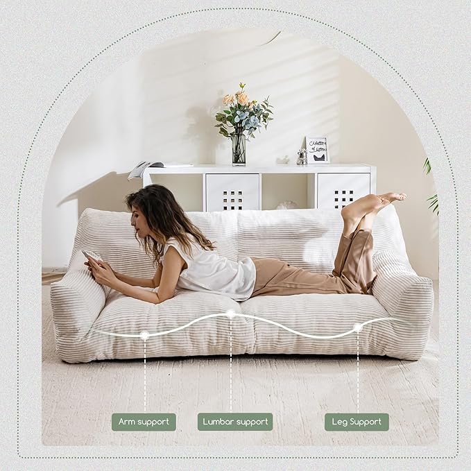 HIGOGOGO Giant Human Dog Sofa Bed, Big Comfy Floor Sofa Couch for Pet Families with Foam Chunk Supportive Mat, Corduroy Orthopedic Dog Bed for Human, Beige