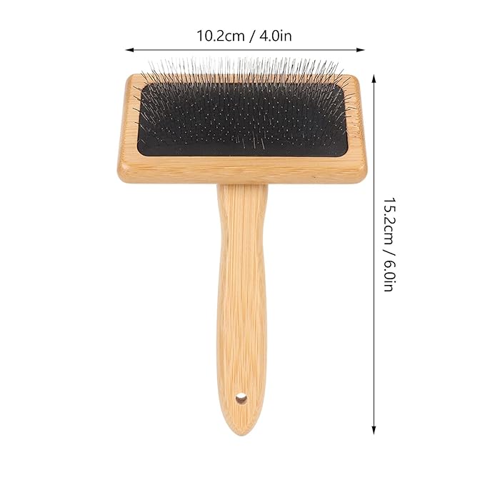 Macrame Slicker Comb with Hole Cushion Finely Polished Bamboo Cleaning Brush Sheepskin Wool Stainless Steel Pins Carding Rug Fur Brushes Long Prongs Pet (13.7x20.3x5.2cm