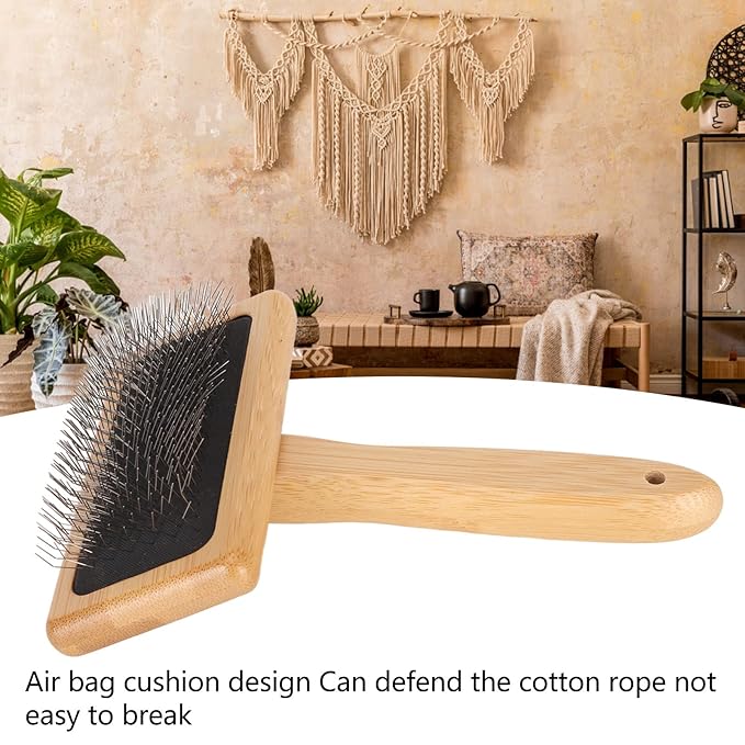 - Superior Design: Featuring an cushion design and finely polished bamboo handle, this Macrame Slicker Comb provides a gentle brushing experience for your pet.