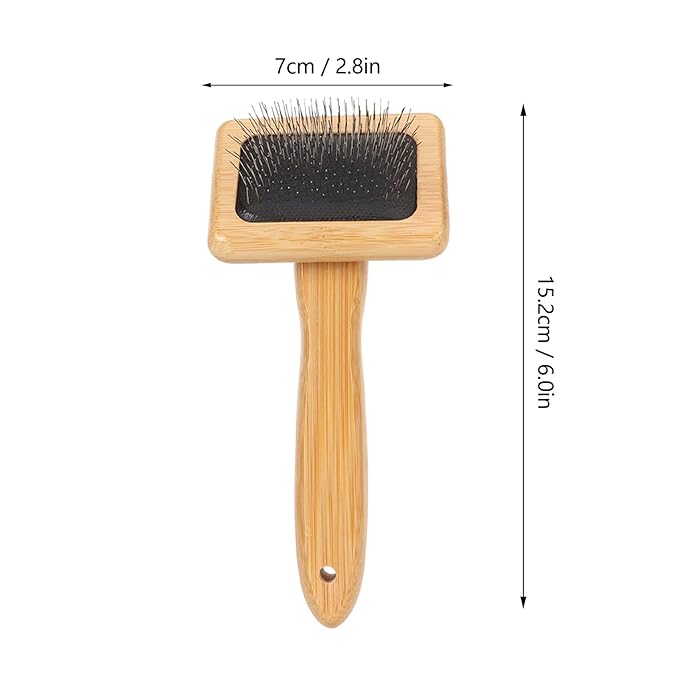 Macrame Slicker Comb with Hole Cushion Finely Polished Bamboo Cleaning Brush Sheepskin Wool Stainless Steel Pins Carding Rug Fur Brushes Long Prongs Pet (12x15.2x4.5cm /