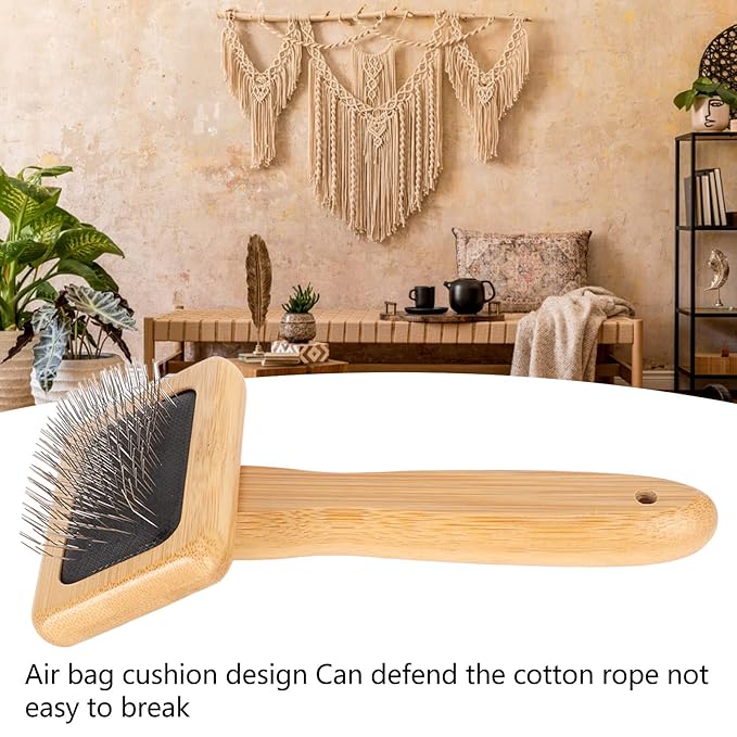 - Superior Design: Featuring an cushion design and finely polished bamboo handle, this Macrame Slicker Comb provides a gentle brushing experience for your pet.
