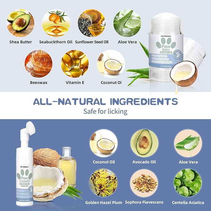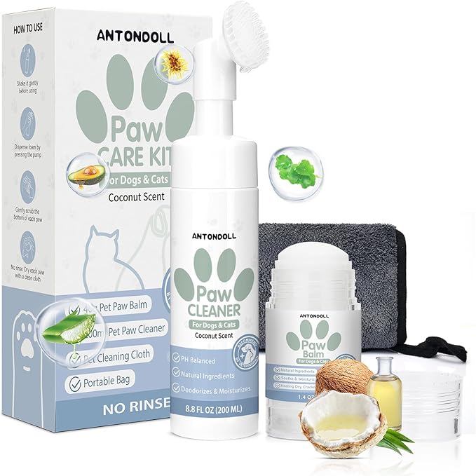 Dog Paw Care Kit - No-Rinse Foaming Paw Cleanser & Balm Stick for Small to Large Dogs & Cats