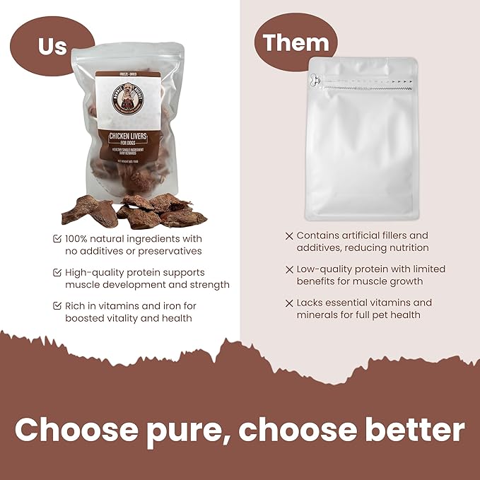 - High-quality protein: The dog treats support muscle development and maintenance in pets, ensuring they stay active and healthy. The freeze-dried chicken liver is a rich source of protein that helps in building strong muscles and sustaining energy levels.