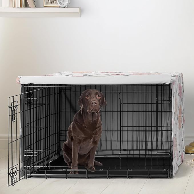 Sweet Jojo Designs Blush Pink Grey Boho Floral Dog Crate Cover – Kennel Covers for 42 Inch Pet Cage Medium/Large - Bohemian Farmhouse Shabby Chic Rose Lily Watercolor Flower Elegant Gray and White