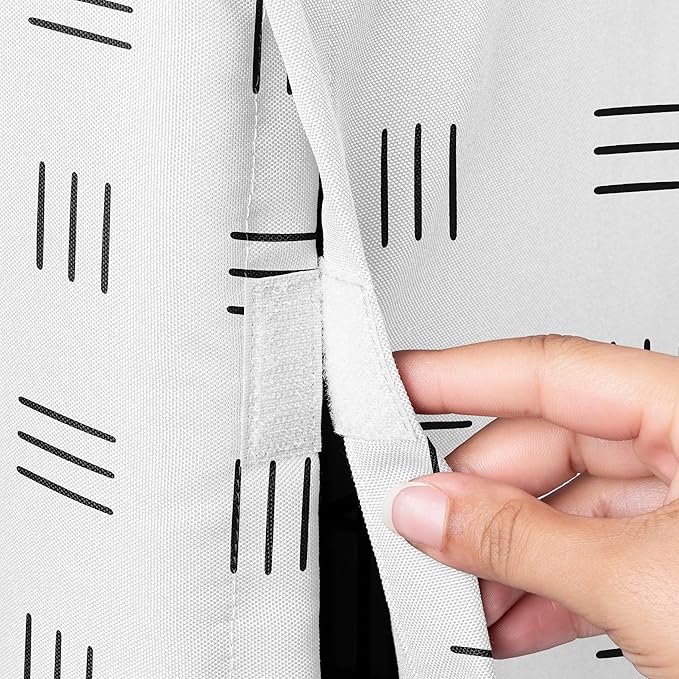 - Featuring exclusive canvas fabric of black and white bohemian minimalist southwest mud cloth hatch neutral boho mudcloth triple lines.
