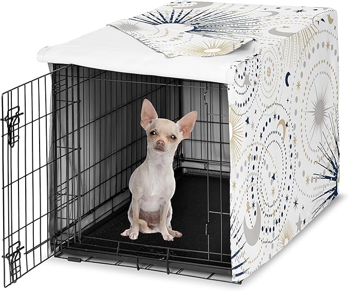 Sweet Jojo Designs Navy Blue Star and Moon Dog Crate Cover – Kennel Covers for 24 Inch Pet Cage Small - Gold Grey Celestial Sky Stars Gray Shabby Chic