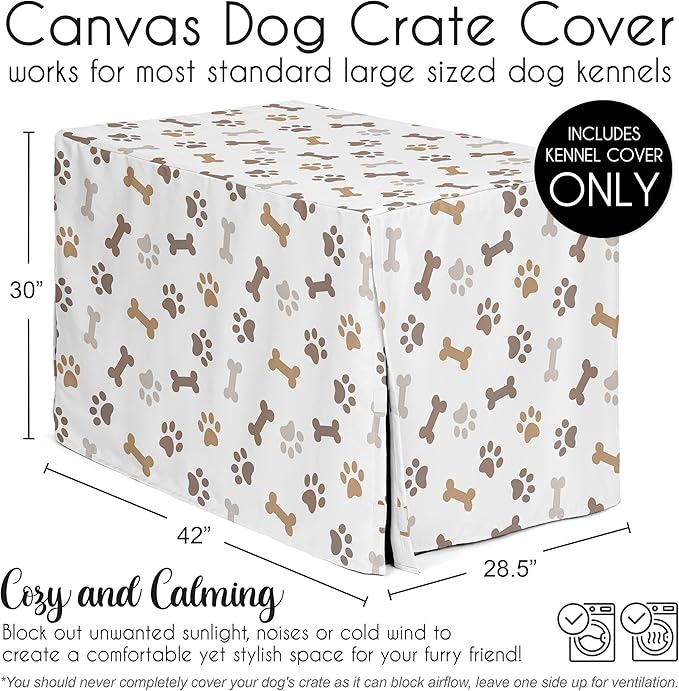 Sweet Jojo Designs Bone Paw Print Dog Crate Cover – Kennel Covers for 42 Inch Pet Cage Medium/Large - Neutral Grey Taupe Brown Modern Off White Gray Tan Puppy