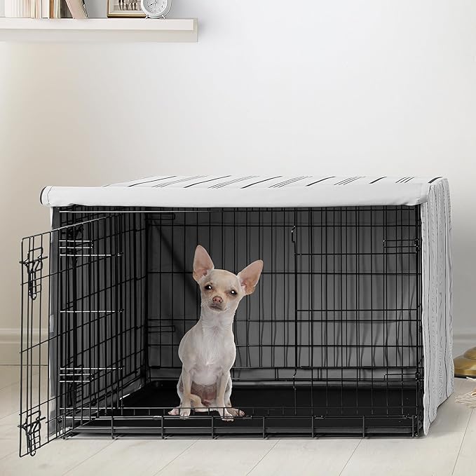 Sweet Jojo Designs White and Grey Stripe Dog Crate Cover – Kennel Covers for 24 Inch Pet Cage Small - Neutral Contemporary Modern Pinstriped Minimalist Gray