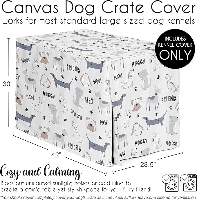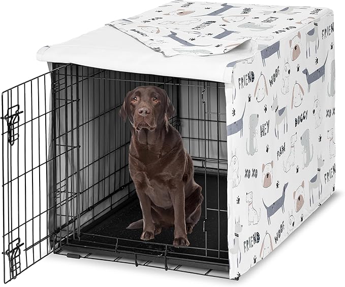 - This durable and stylish dog crate cover is the best way to create a comfortable and cozy space for your four legged friend with a protective canvas fabric that securely covers the top of your pets cage for a dark and tranquil crate at all times. Give your puppy a space where they can rest and relax after a long day of playing or secure flaps with our hook and loop closure design to allow your pet to enter and exit as they please.