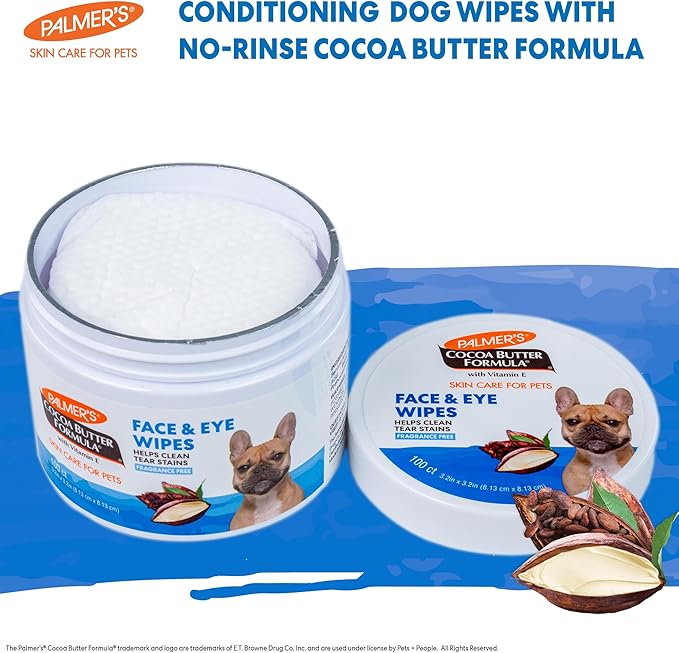 Palmer's for Pets Face and Eye Wipes with Cocoa Butter and Vitamin E, Dog Eye Cleaning and Care, Specially Fomulated for Dogs, 100ct
