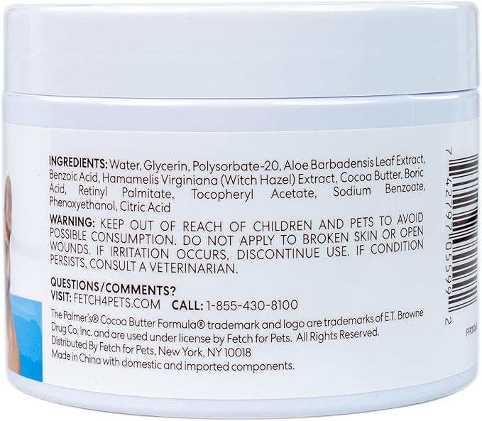 - COCOA BUTTER FORMULA - Now pets can enjoy the skin soothing quality of Palmer's Cocoa Butter with Palmer’s for Pets skin and coat care products.