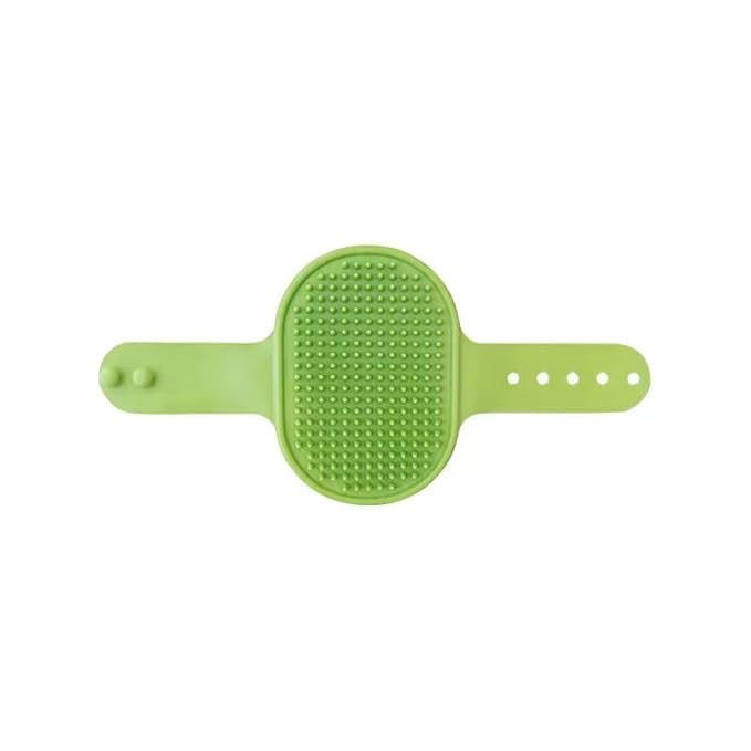 Silicone Pet Brush Pet Massage Bath - Flexible Rubber Dog Shower Brush with Adjustable Strap - Soothing Massage Bristles Produce more Lather, Reduce Bath Time, Remove More Dirt & Loose (Green)