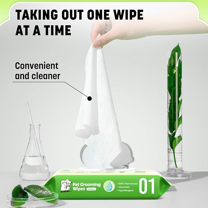 - 【TAKE OUT ONE WIPE AT A TIME】Dog or cat wipes using a unique process, only one dog wipe is extracted at a time, which is convenient, clean, and waste-free. Hypoallergenic cat wipes, which can be used to wipe dust, tear stains, food residues, dander, and care for special periods on pets