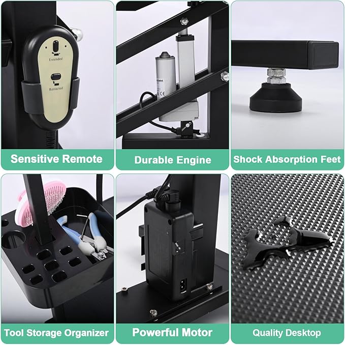 - 【Anti Skid Tabletop with Remote Control】 The table is equipped with an anti-skid surface to keep your pet secure during grooming. Plus, the included remote control makes adjusting the table height a breeze.