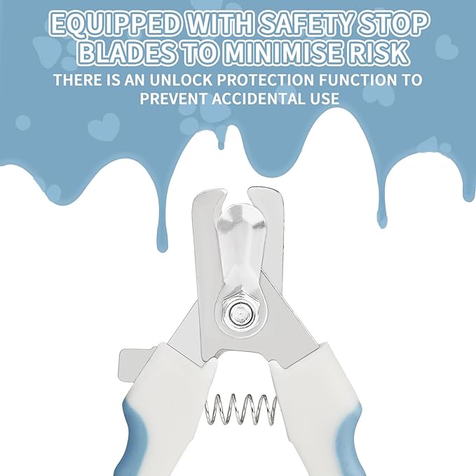 - SAFETY FEATURES: Cat nail clippers with safety guard to reduce risk and unlock protection to prevent accidental use pet nail clippers ideal for both kittens and small dogs