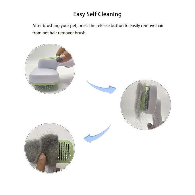 - Enrich the Experience:This pet hair remover brush have blue,green,pink,and gray colors.Self cleaning hair brush suitable for cats,dogs,and pet bunnies with short,long,fluffy,or curly hair