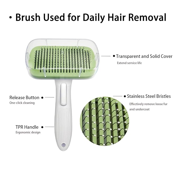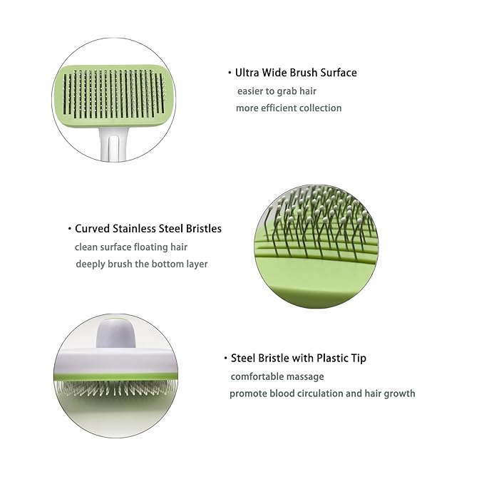 - One-click Cleaning Button:Cat brush with release button.After brushing your pet,press the button to easily remove hair from dog grooming brushes