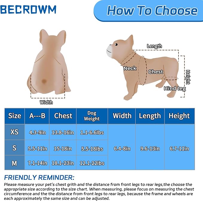 - 【Friendly Tips】: Before making a purchase, be sure to measure your pet for proper sizing. Our pets are family and should never be given up on, especially when a small dog wheelchair can give them a second chance at life. We wish your pet all the best in their recovery