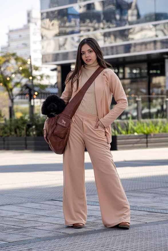 - Luxury dog sling carrier, fashioned from top-tier vegan leather. Designed with your convenience in mind, made with washable materials. This dog sling carrier combines style and practicality, to meet all your expectations.