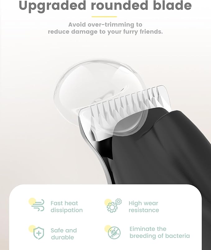 - With LED Display and LED Light: The LED display clearly shows the battery capacity, allowing you to know the charging status of the cat clippers at any time.High brightness LED light can safely and clearly trim the pet's hair in fine areas, avoid over-trimming and minimize the damage to your pet