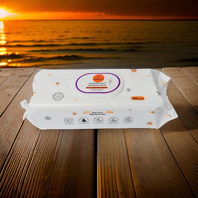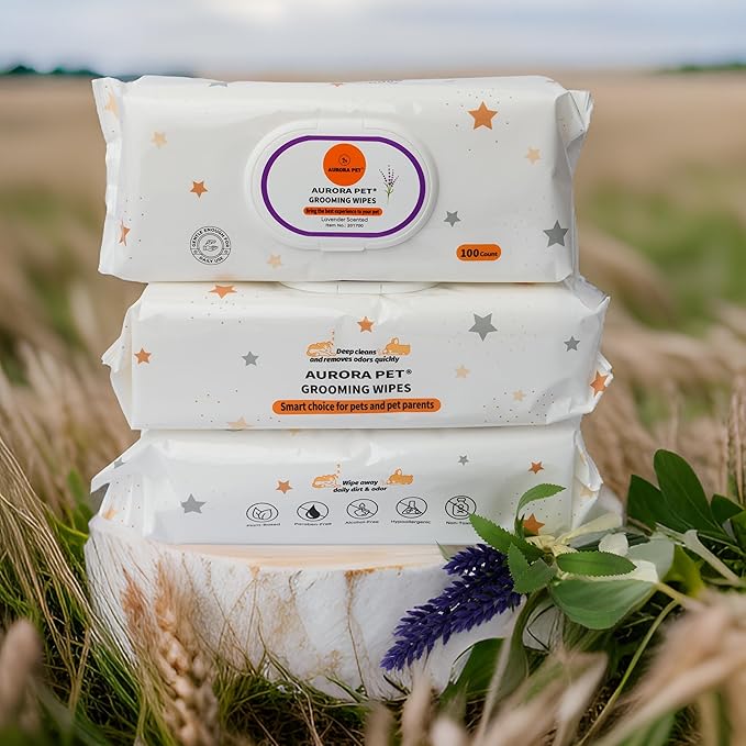 Aurora Pet Wipes – 100% Natural, Plant-Based Hypoallergenic Grooming Wipes for Dogs & Cats – Extra-Durable, Large & Thick for Effortless Cleaning (Lavender, 100 Count)
