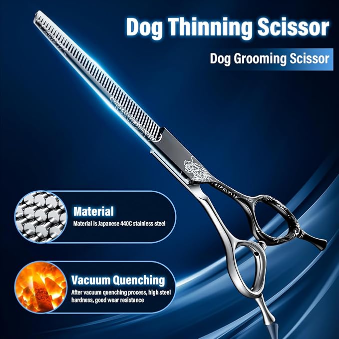 Purple Dragon Dog Grooming Scissors 7-Inch Thinning Shears- Professional Pet Hair Trimming Shears for Dogs & Cats, Sharp 440C Japanese Steel, Ergonomic Design for Comfort and Precision