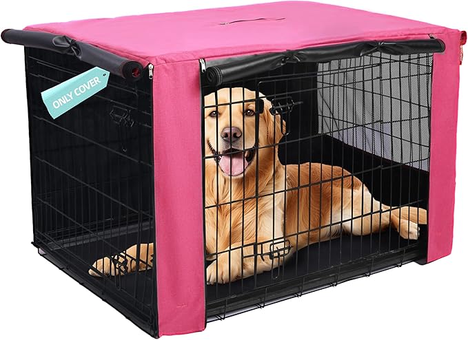 HiCaptain Dog Crate Cover for 30 Inches Wire Crate, Heavy-Duty Breathable Pet Kennel Covers Fit for 1 2 Doors Standard Wire Crate (Pink 30 inches)