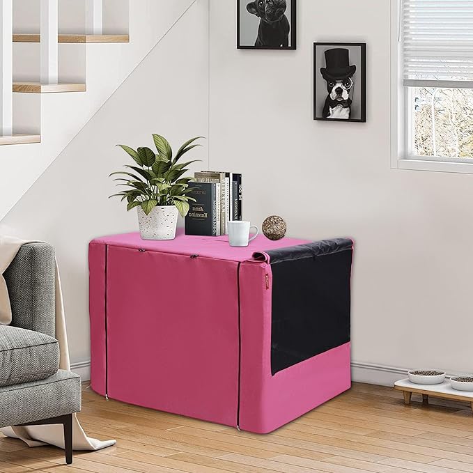HiCaptain Dog Crate Cover for 24 Inches Wire Crate, Heavy-Duty Breathable Pet Kennel Covers Fit for 1 2 Doors Standard Wire Crate (Pink 24 inches)