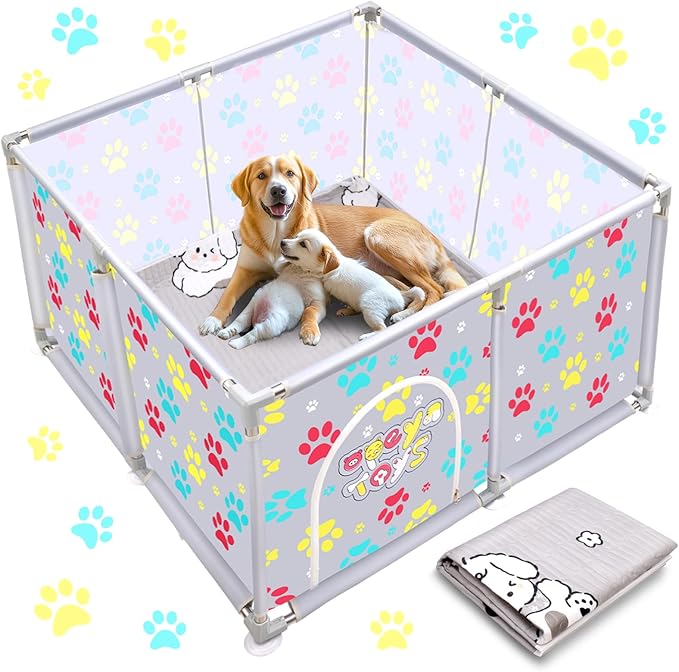 - Considerate Gift for PET Lovers: offering a ideal gift to puppy and kitten care, our puppy whelping supplies is the functional gift for pet lovers and breeders, This fence can be used as a delivery box or as a game fence for small pets or animals, to avoid damaging household items and dirtying the floor. Small pets can be placed inside the fence to play on their own, and keepers can sit inside and play with their beloved pets.