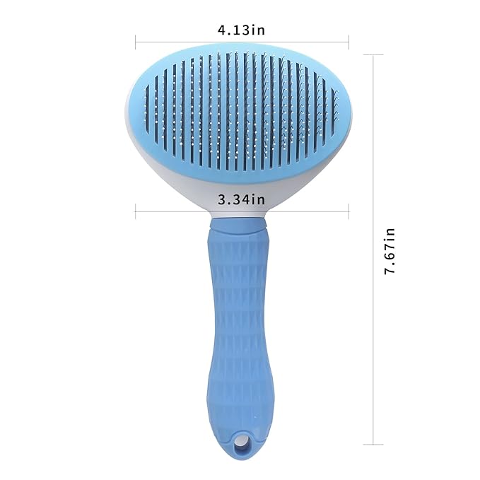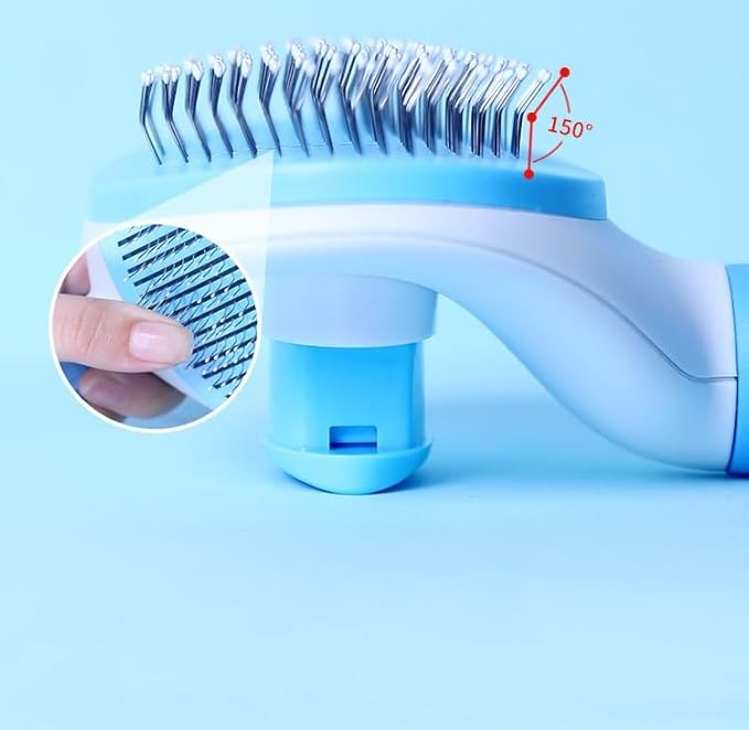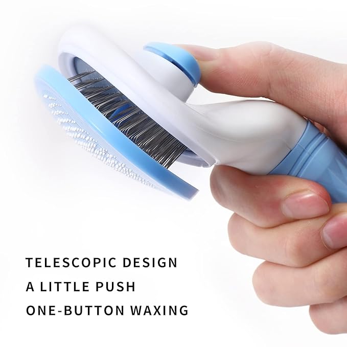 - Self-Cleaning Feature: The Pet Grooming Brush is equipped with a convenient self-cleaning mechanism. Simply press a button to retract the bristles and remove loose hair and debris, making cleanup effortless. This innovative design ensures a hygienic grooming experience and saves you time on maintenance.